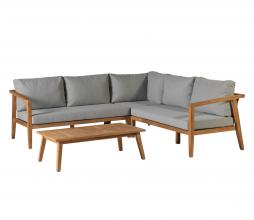 WOOOD Lucca loungeset incl. kussens teak bruin/warmgrijs