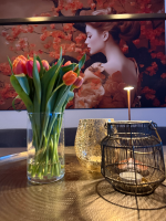 Wij hadden een groot raam aan de muur, waar nu (zie foto) het prachtige schilderij hangt. Ik heb lang gezocht op de site en kwam er maar niet uit en dacht een bosje tulpen aan de muur is altijd goed. Het allermooiste was nog, dat ik het schilderij zaterdag op mijn verjaardag 's avonds geleverd kreeg. We zijn er beide heel erg tevreden mee en komen zeker nog wel een keertje terug om weer iets moois uit te zoeken.