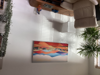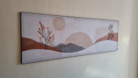 Wij hebben 2 prachtige werken besteld en zijn er zó blij mee! Ten eerste word je netjes op de hoogte gehouden via mail wanneer je werk geleverd wordt en het was goed en netjes ingepakt, eenvoudig op te hangen en het staat prachtig! Het voordeel van het Artframe is dat je in de toekomst andere doeken kan bestellen en er zo in kan hangen. 1 minpuntje van het Artframe: dat het frame alleen aan de muur bevestigd kan worden (nu hebben wij dat zelf aangepast)