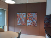 In eerste instantie een doek ontvangen met een slechte kleurdekking. Hierdoor zag je de het frame door het doek heen. Dit is netjes opgelost door de klantenservice door het opsturen van een nieuw doek. De printkwaliteit is niet geweldig, dit zie je met name als je er dichtbij staat. Geluidsabsorberende paneel vond ik wat onhandig. Deze moet ik zelf verknippen om mooi passend te krijgen.