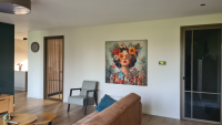 Het ArtFrame was ontzettend makkelijk in elkaar te zetten, en het "wissel"doek ging er binnen enkele minuten in. De dunne rand van het frame geeft het een heel stijlvol gevoel. En de kwaliteit van de print is prachtig. De details zijn goed te zien, de kleuren heel diep en intens, en het grote formaat van het totaal maakt het geheel echt tot een "wow" factor. Ik heb nu al meerdere muren op het oog om ook wat van Werk aan de Muur aan te gaan hangen, nu we veel leeg hebben na een grondige verbouwing (ook heel handig dat je er akoestische panelen achter kan hebben!)