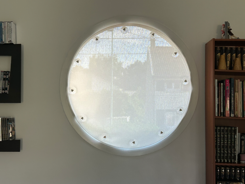 depuis que nous avons installé notre store sur mesure sur notre oeil de boeuf exposé plein sud donnant dans notre salon télé, nous respirons et pouvons passer des soirées TV dans une atmosphère agréable. Le store est installé en intérieur et est efficace à 100 %