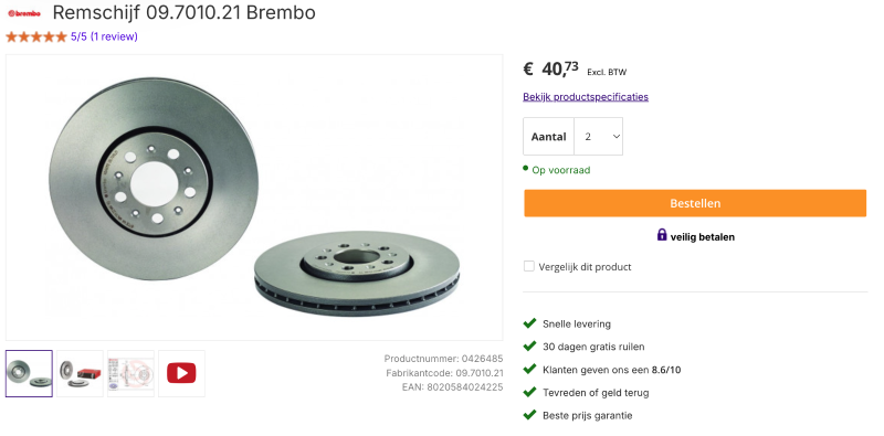 Super slechte service: je geeft je chassisnummer in en ze sturen nog het verkeerde onderdeel op. Dan mag je dan terugsturen en 2 weken wachten op een reactie of zelf betalen om het juiste onderdeel opnieuw te bestellen. Want je hebt dit natuurlijk nodig om met je auto te rijden. KLantendienst is ook heel onbeleefd en verwijst altijd naar hun 'voorwaarden' Ik koop hier nooit meer.