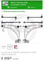 Set: goede kwaliteit en passing. Omdat onduidelijk was op welk moment de set zou worden afgeleverd, heb ik een mailbericht gestuurd. Daarop kwam geen respons. Onverwacht kwam de bezorger bij mij aan de bel. Gelukkig was ik thuis. In het andere geval zou ik met de planning in de knoei zijn gekomen. Maar goed....ondertussen rijdt en stuurt 'het oudje' weer alsof ie net een verjongingskuur heeft ondergaan 《[÷)• Vgr Herman Schalk