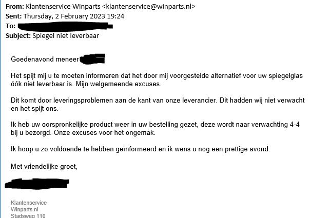 In het geval dat u in de toekomst Winparts overweegt kunt u gerust contact met ons opnemen om meer informatie op te vragen over bijvoorbeeld de levertijd.