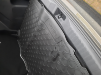 De kofferbak mat is opgevouwen i.p.v. opgerold aangeleverd, hierdoor krijg je een golvende mat