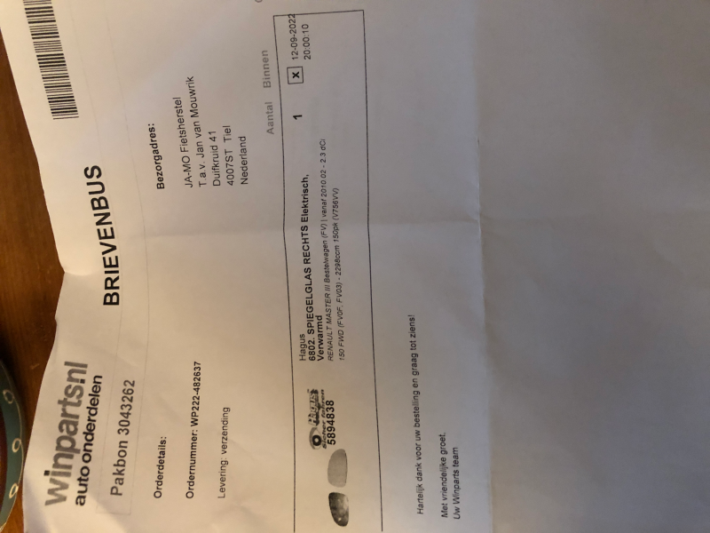 Ik heb altijd goede ervaringen met Winparts.!!!!