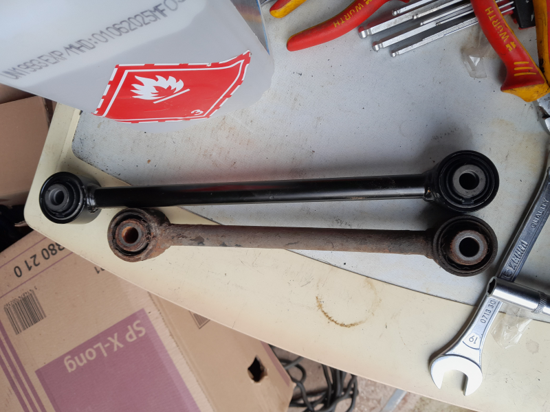 Draagarm besteld volledig volgens chassis nr en beschrijving rechts achter, en afgaan volgens foto... , enkel de afmetingen stonden er niet bij op de website. Natuurlijk was het weer de verkeerde. 5cm te lang. Deze past zelf nergens anders op mijn voertuig. De diameter van de bushings zelf was ook 1mm dikker dus uitpersen was ook geen optie.