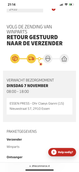 Ik heb besteld bij Winparts, en laten leveren door DHL bij een DHL afhaalpunt. Ik kreeg bericht van DHL dat het adres onbekend was (again, DHL AFHAALPUNT) ik contacteer winparts hoerover, maar na een week nog geen reactie, dit is de laatste keer dat ik bij winparts bestel, en ik raad het iedereen af.