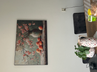 Zo tevreden met mijn mooie kunstwerk aan de muur; heel erg blij mee! Het artframe is eenvoudig in elkaar te zetten en de kwaliteit is top. Mooie kleuren , die mooi matchen in de woonkamer. Keuze is ook enorm, dus voor elk wat wils. Foto volgt nog, want het hangt nog niet aan de wand: eerst iemand zien te vinden met een speciale boormachine