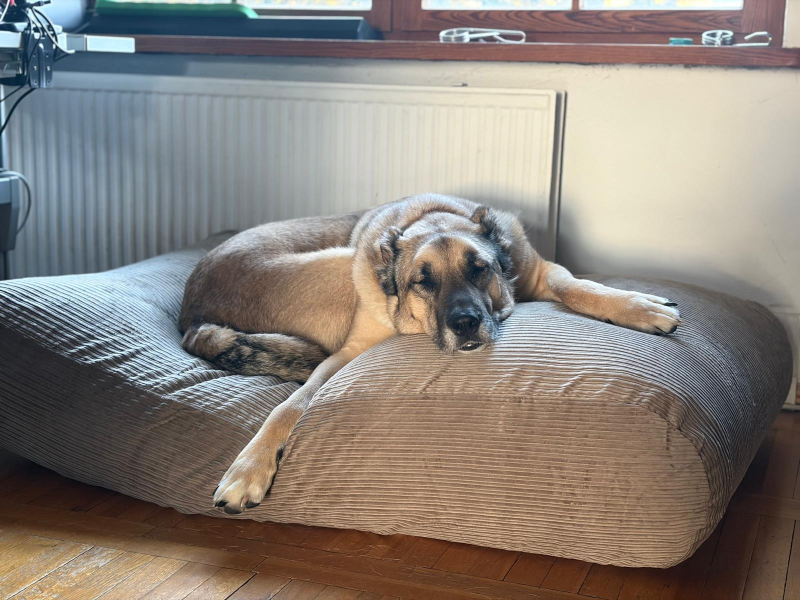 Das Hundebett ist von der Bearbeitung und vom Stoff super! Einziges Manko - es dürfte etwas mehr Füllung im Kissen sein (ich habe aus einem Sitzsack ein bisschen nachgefüllt). Henry liebt sein Kissen (Größe L, anthrazit, Cord)