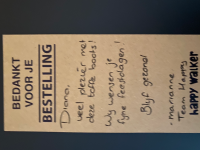 Het kerstcadeau dat ik had gekocht werd erg snel geleverd en was bijzonder leuk ingepakt. Tot onze grote verrassing had Happy Walker er zelf ook nog een leuke attentie bij gedaan. Bedankt voor deze persoonlijke aandacht. Bijzonder in deze tijd.