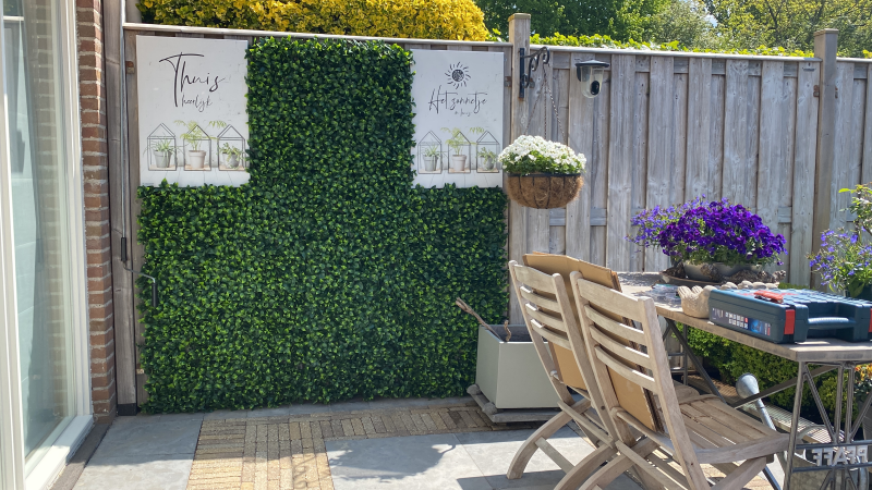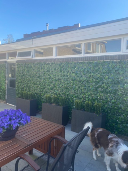 Ik heb meerdere kunsthagen voor buiten besteld voor op de schutting. Ik ben er weg van, mooi groen zonder onderhoud. Ook mijn vriendinnen en collega's vinden het erg mooi. Niet goedkoop maar wel waar voor je geld.