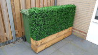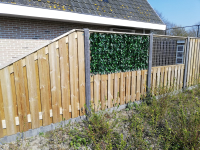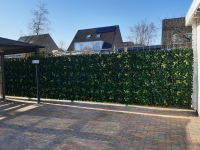 We zochten voor onze openingen tussen de schuttingdelen een geschikt materiaal om de inkijk “natuurlijk” dicht te krijgen. Een doek vonden wij niet mooi en onhandig. Uiteindelijk uitgekomen bij Kunsthaagvoordeel en gekozen voor een Hedera kunsthaag. Montage was erg gemakkelijk. De matten zijn eenvoudig aan elkaar klikken en op maat knippen. Levering was ook erg snel ….. dus al met al een prima product met een uitstekende service. Wij zijn erg tevreden!