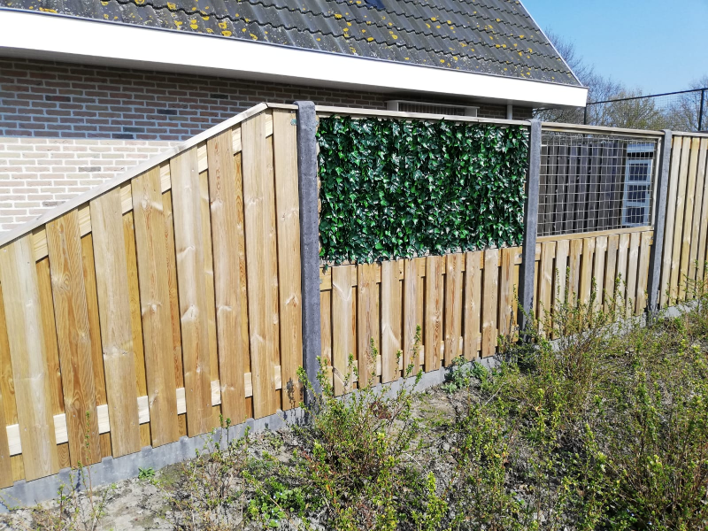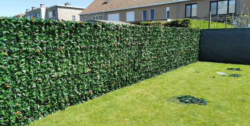 Gezocht naar een mooie oplossing voor onze kale schutting met trellis gaas en gekozen voor de Hedera Helix kunsthaag. Via de website besteld en de volgende dag al geleverd. Montage gaat vrij snel omdat de kunsthaag matjes gemakkelijk aan elkaar te koppelen zijn. Met de handige tyraps die je erbij kan bestellen kun je de kunsthaag vastzetten. Wij zijn er erg blij met het eindresultaat!