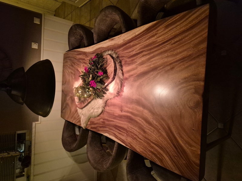 Tafel ziet er echt goed uit en is mooi afgewerkt. De gebruikte kleuren zijn warm en diep. Prachtig!