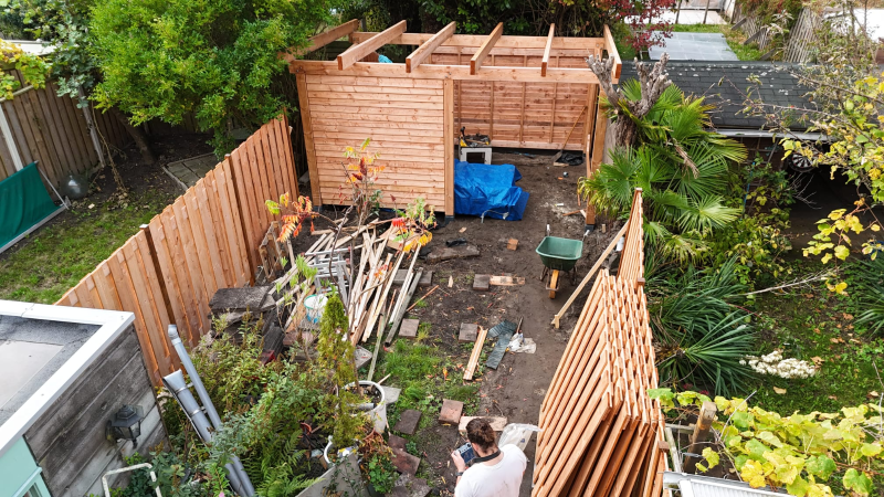 De schuttingpanelen waren snel geleverd, maar zijn niet zo netjes als ik had gehoopt. Er zit best wat verschil in de hoogte van de planken waardoor het lastig is een rechte zichtlijn te krijgen. Echter, de panelen waren niet duur.
