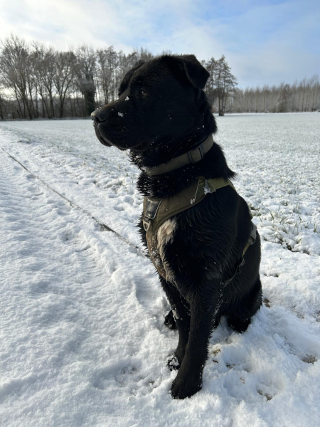 Hallo Aniek. Ik heb een labradorteef van 2,5 jaar. De drukste uit het nest, heel onstuimig en lomp. Ik had meerdere hulpvragen, zoals trekken aan de lijn, eten van de straat en op iedereen en alles afvliegen. Bij de socialisatie heb ik haar met iedereen en elke hond laten kennismaken. Door jouw cursus heb ik geleerd dat ze mensen en honden ook kan negeren. Met behulp van snoepjes lukt dat al vrij aardig. Het trekken aan de lijn gaat ook steeds beter. Het eten van de straat is moeilijk voor haar, het is toch een labrador, hè. Door de lichaamstaal van honden, kijk ik nu anders naar mijn hond en begrijp haar beter. Hierdoor wordt het wandelen een plezier en geen gevecht meer. Dankjewel!