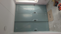 Online drie schuifdeuren met softclose geconfigureerd. Omdat ik ook aan de zijkant een koof wilde maken ( ivm cv-leidingen ) en een koof voor wegwerken LED verlichting eea telefonisch doorgenomen met John van Woudenberg. Er kwam dus een extra stukje maatwerk bij. Na een paar weken wachten kwam het bezorgmoment precies voor mijn kerstvakantie. Dus dat eerste weekend maar even druk geweest en het resultaat is super hotel chique geworden. Bekijk op YouTube nog even extra video's mbt softclose ( het voor spannen van het reeds ingebouwde mechanisme is noodzakelijk ).