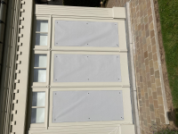 Het juist plaatsen van de zuignappen is lastiger dan het uit de handleiding lijkt. De schroefdraad waaraan de plastic moertjes bevestigd worden zijn dunner dan het gat in de ringoogjes die in de zonwering zijn gemaakt. Het is zaak deze precies in het midden te plaatsen, omdat de zonwering anders onder spanning komt te staan en minder goed blijft zitten. Uiteindelijk heb ik maar per zuidnap geïnstalleerd in plaats van eerst de 4 zuignappen goed plaatsen, maar dat kostte wel enige tijd. het zou eigenlijk beter zijn als de ring-oogjes in het doek precies de dikte hadden van de schroefdraad van de zuignap. Verder krult het doek wat op en zijn de optionele hoekstukjes waarschijnlijk onmisbaar. Het doek neemt veel licht weg en waarschijnlijk ook warmte (hoewel er nog geen hittegolf is geweest nadat ik ze gemonteerd heb. Het is nu afwachten of het doek ook blijft zitten als er een zomerstorm over het land raast.