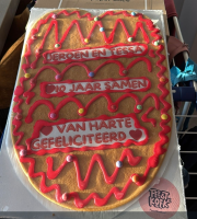 Onlangs een Spakenburgs hart besteld voor de verjaardagen bij ons thuis met tekst erop. Helemaal geweldig. Keurig op tijd geleverd en smaakte voortreffelijk.