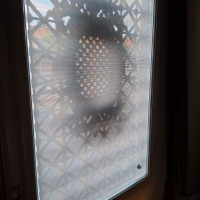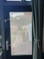 Makkelijk aan te brengen, sluit perfect af, maar ik gebruik het als een soort van vitrage aan de binnenkant. Dan is de aanblik van binnen en van buiten nochal eentonig en saai. Is het misschien mogelijk een soort van fage (het moet ook niet te druk worden), opdruk op het doek aan te brengen, in de vorm van b.v. een bloemmotief, vogels of wolkenpartij? Volgens mij zou het daar wel wat van opfleuren.