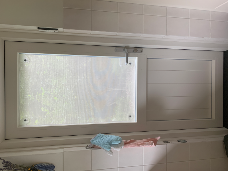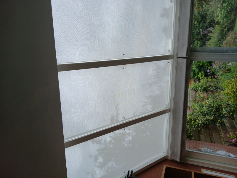 Screendoek voor een dakraam in een schuifdak geplaatst. Eenvoudig aan te brengen en blijkt zeer doelmatig hebben we inmiddels ondervonden. Voorgaande jaren spande we een laken voor het dakraam, maar bij wind en regen moest dat steeds worden verwijderd. Nu met het weerbestendige Screendoek levert dat veel gemak op. We zijn zeer tevreden.