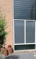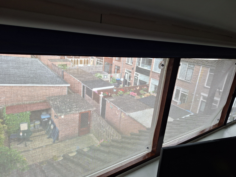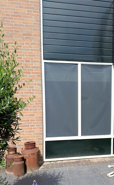 Binnen een week bezorgd. Bij de plaatsing was het mij niet duidelijk of ik de hoekversteviging aan de binnen- of buitenzijde moest bevestigen, maar ik kreeg binnen een uur antwoord op mijn mail. Gemakkelijk te plaatsen en ziet er heel netjes uit. Kunnen nog goed naar buiten kijken, maar laat geen zon door. In een woord: perfect!
